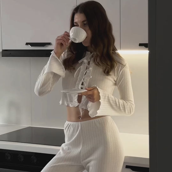 El pijama Julia de Mother's Pijamas es la personificación de la ternura y la sofisticación para las madres que valoran la comodidad y el estilo incluso en casa. Está confeccionado con un tejido suave de primera calidad, agradable al tacto, que permite una total libertad de movimiento y una comodidad absoluta.